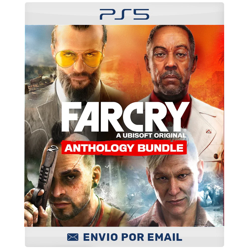 Experimente a emoção da franquia premiada Far Cry com o Pacote Antologia. Viaje até as exóticas Ilhas Rook, sobreviva às colinas de Kyrat, salve a terra dos livres em Hope County, Montana, e liberte a ilha de Yara de um ditador cruel e seu regime! Enfrente quatro vilões icônicos e cruéis – Vaas, Pagan Min, Joseph Seed e Antón Castillo (interpretado por Giancarlo Esposito) nesse pacote de edição limitada.